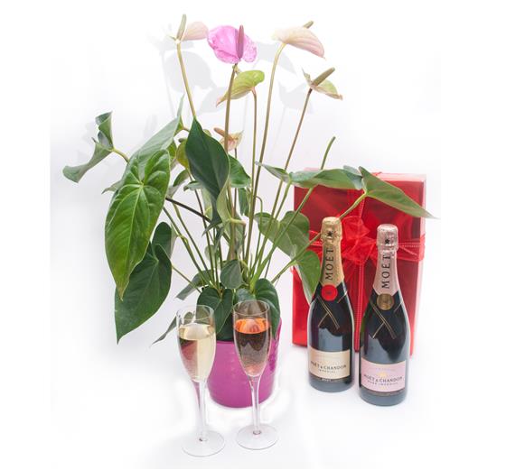 Anthirium Potted and  Moet & Chandon Gift Set  1