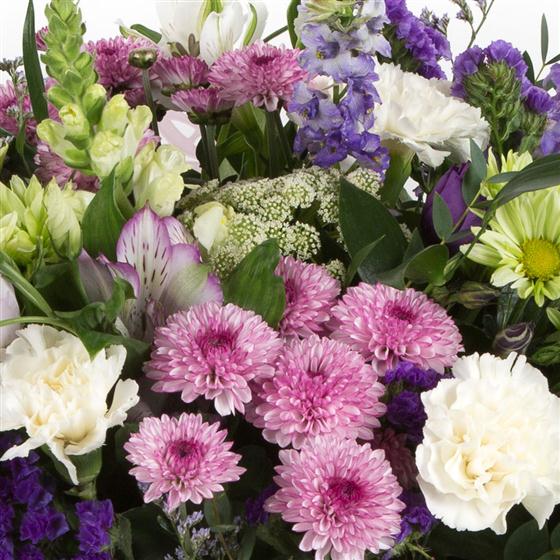 Please note that due to the seasonal availability of flowers it may be necessary to vary individual stems from those shown. Our skilled florists may substitute flowers for one similar in style, quality and value. Where our designs include a sundry item like a vase or basket it may not always be possible to include the exact item as displayed. If such an occasion arises we will make every effort to replace the item with a suitable alternative.