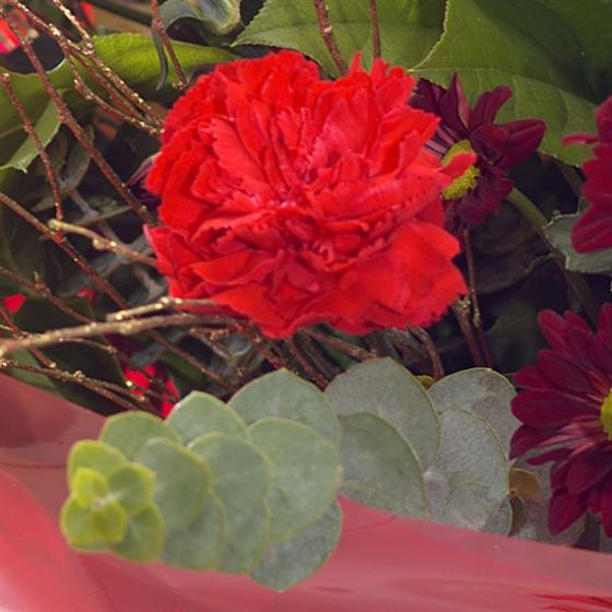 A bright bouquet of rich reds and Santa! We've added a box of 9 Danucci Milk Chocolates to make this a lovely Christmas flower gift.