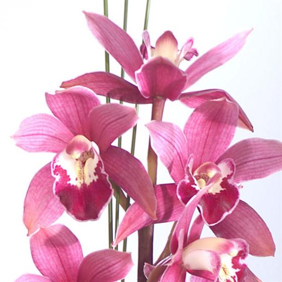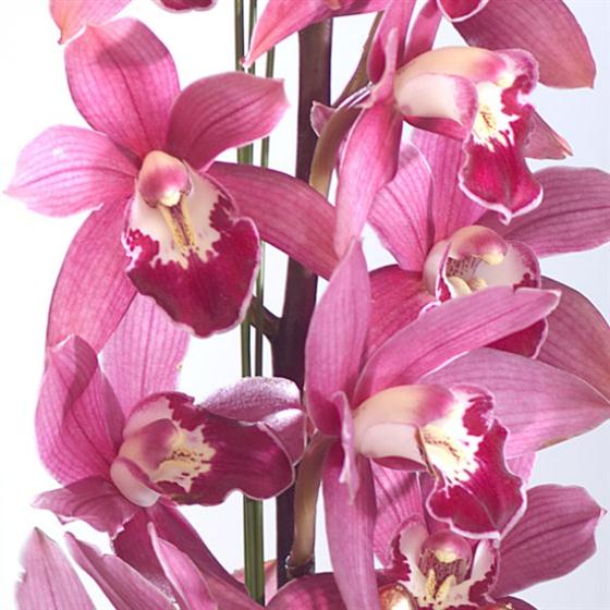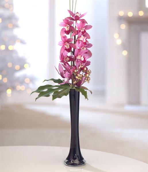A delicately pink Cymbidum Orchid presented in an elegant black glass vase. A simply gorgeous Christmas flower gift.