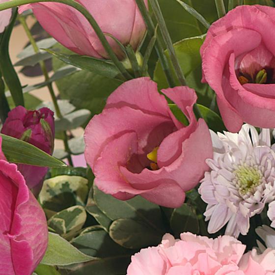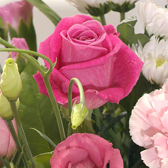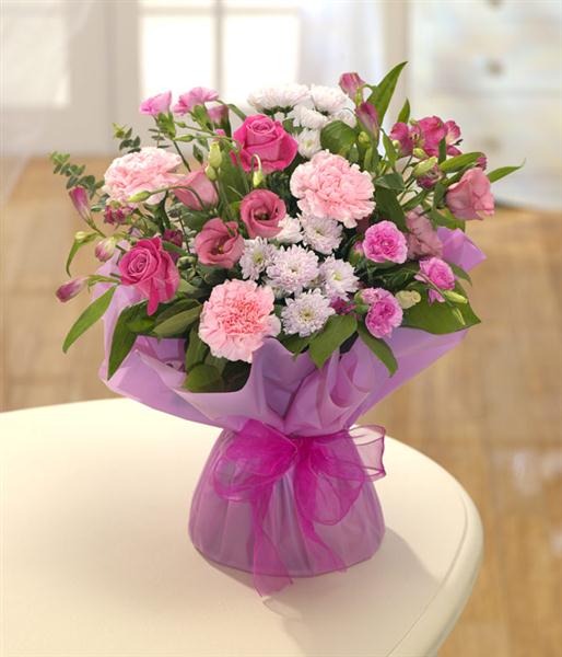 Soft and rich pink flowers featuring Roses, Carnations and Lisianthus beautifully presented for that special delivery.