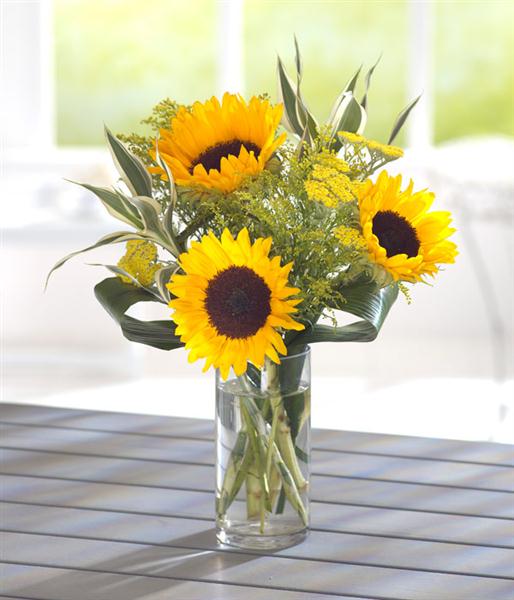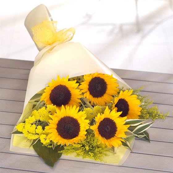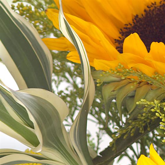 Perfect for summer. Make a statement with this cheerfully bold and striking sunflower bouquet. Vases are available from our selection to compliment your gift .